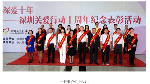 活動(dòng)回顧:4月28日下午,“深愛十年”深圳關(guān)愛行動(dòng)十周年紀(jì)念表彰活動(dòng)在深圳廣電大廈拉開帷幕。百萬市民矚目的年度“十佳愛心人物”、“十佳愛心企業(yè)”等名單一一揭曉。中央、省文明辦的相關(guān)領(lǐng)導(dǎo),深圳市委書記王榮等市有關(guān)領(lǐng)導(dǎo)出席,相關(guān)成員單位以及社會(huì)各界愛心人士代表近1000人參加活動(dòng)。以“關(guān)愛•感恩•回報(bào)”為主題的深圳關(guān)愛行動(dòng)迄今已連續(xù)舉辦十屆,現(xiàn)已經(jīng)成為深圳精神文明建設(shè)的重要品牌。