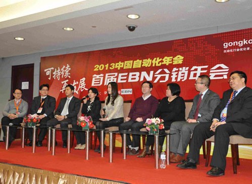 同時,會議邀請李總以及ABB低壓、新時達(dá)、步科、百通赫斯曼、研華、魏德米勒渠道負(fù)責(zé)人一起就2013年對EBN的分銷政策、以及工業(yè)電商的發(fā)展趨勢、EBN發(fā)展前景等內(nèi)容展開討論,百家爭鳴,為與會的經(jīng)銷商、渠道商答疑解惑。各家精彩的發(fā)言使臺上臺下受益匪淺,掌聲雷動。