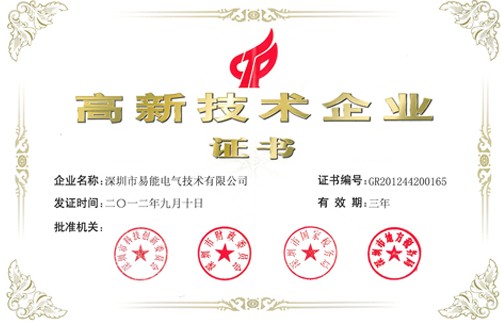 經(jīng)認(rèn)定,我司已于2012年9月10日獲得“國家高新技術(shù)企業(yè)”稱號。