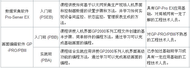 GP/ST/GLC的各項(xiàng)強(qiáng)大功能,Pro-face特舉辦免費(fèi)滾動(dòng)式培訓(xùn)課程。為滿足不同的客戶需求,我們特地設(shè)計(jì)了從初級(jí)到高級(jí)的軟件課程,您可以根據(jù)自身的應(yīng)用要求選擇合適的課程。培訓(xùn)課程以基礎(chǔ)功能講解和實(shí)際案例應(yīng)用相結(jié)合,并現(xiàn)場解答各類問題。