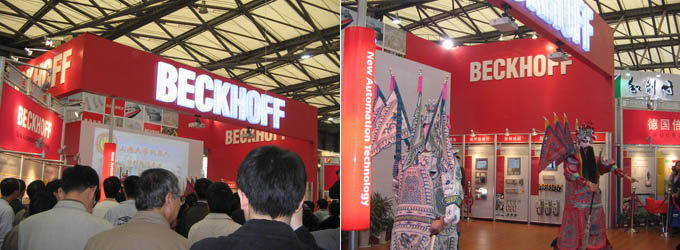 2009中國(guó)國(guó)際工博會(huì),德國(guó)倍福紅色的展臺(tái)醒目鮮艷,產(chǎn)品展示區(qū)簡(jiǎn)單大氣,現(xiàn)場(chǎng)展示的機(jī)器人戲曲表演更是吸引了大批與會(huì)觀眾駐足停留。
