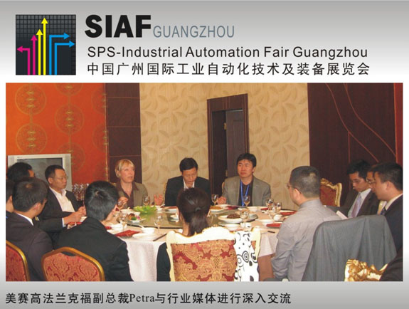 | 11月5日,SIAF GUANGZHOU 的主承辦單位--中國(guó)對(duì)外貿(mào)易廣州展覽公司、廣州富洋展覽有限公司、廣州光亞法蘭克福展覽有限公司以及德國(guó)美賽高法蘭克福展覽有限公司在上海召開(kāi)了媒體見(jiàn)面會(huì),邀請(qǐng)了國(guó)內(nèi)外的自動(dòng)化行業(yè)媒體出席。美賽高法蘭克福展覽公司副總裁Petra Haarburger女士在會(huì)上做了發(fā)言,“SIAF2010中國(guó)廣州國(guó)際工業(yè)自動(dòng)化技術(shù)及裝備展覽會(huì)”在自動(dòng)化領(lǐng)域內(nèi)已經(jīng)引起了巨大反響,眾多國(guó)際知名品牌紛紛積極報(bào)名參與此次盛會(huì),主辦各方都對(duì)SIAF2010的前景充滿了信心和期待。