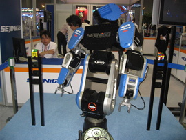 考察團一行觀摩了韓國機床展。由于韓國KOMAF與EASTPO2007首度合作全面告捷,KOMAF對東博國際機床展及中國機床市場發(fā)展?fàn)顩r深表信心。KOMAF與 EASTPO2008進行了更為深入的合作,合作簽約儀式將于11月在上海舉行。將于2008年7月9日-12日在上海新國際博覽中心舉行的EASTPO2008,韓國組團還將帶來新型機器人,機器人將在展會現(xiàn)場進行“模仿秀”、“人機互動比賽”等新穎模式表演,這些機器人將向工業(yè)市場如汽車、手機、 FPD等提供系統(tǒng)的高附加值客戶服務(wù)。