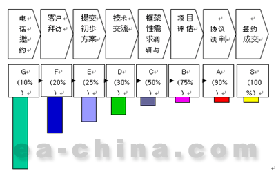銷售過(guò)程需要分解成為幾個(gè)標(biāo)準(zhǔn)化的階段,例如:工業(yè)品項(xiàng)目銷售過(guò)程為:(如下)
