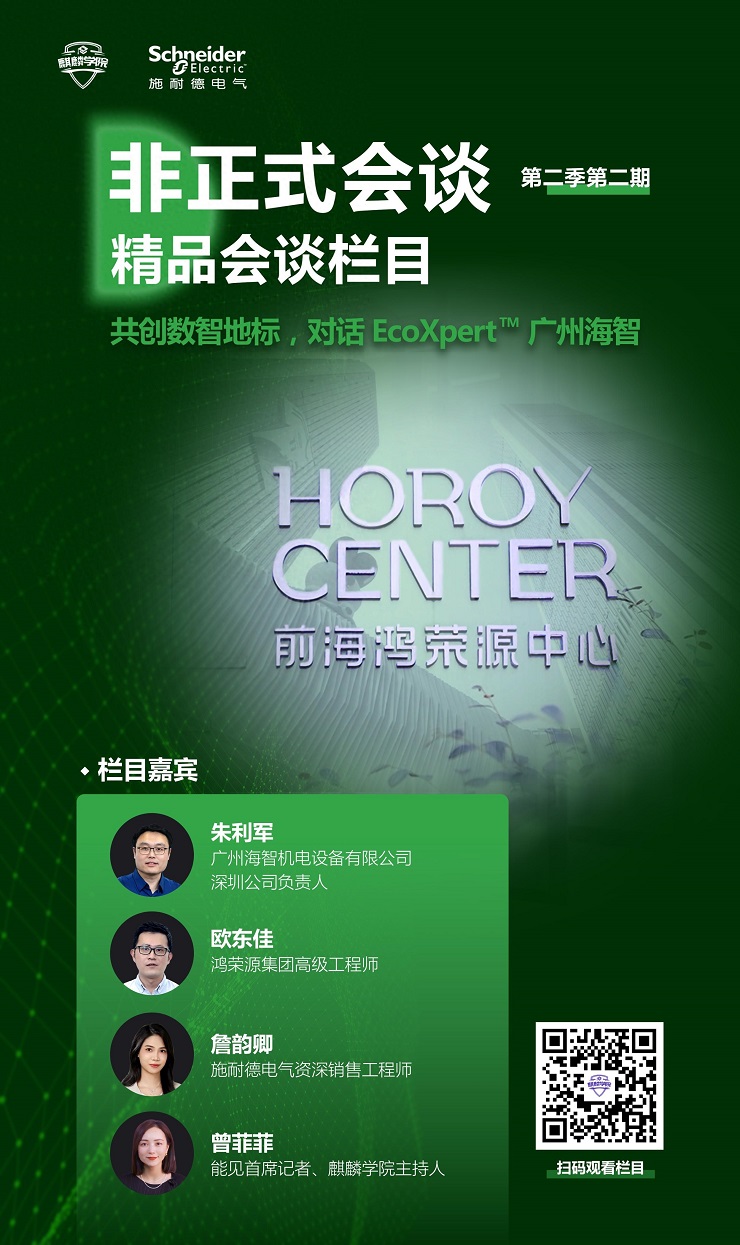 由全球能源管理與自動(dòng)化領(lǐng)域的數(shù)字化轉(zhuǎn)型專家施耐德電氣打造的全新一季精品會(huì)談欄目“非正式會(huì)談”第二季正火熱播出,并于近日正式上線了第二期節(jié)目。在本期會(huì)談中,廣州海智機(jī)電設(shè)備有限公司(以下簡稱廣州海智)深圳公司負(fù)責(zé)人朱利軍及鴻榮源集團(tuán)高級(jí)工程師歐東佳作為特邀嘉賓,與施耐德電氣資深銷售工程師詹韻卿一起,就EcoXpert™合作伙伴計(jì)劃的數(shù)字化賦能和深圳前海鴻榮源中心項(xiàng)目的建設(shè)展開深度討論,為觀眾帶來智能樓宇領(lǐng)域的前沿實(shí)踐經(jīng)驗(yàn)分享。