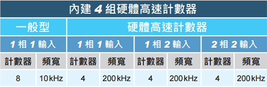 ▲ 支持4組200kHz硬件高速計(jì)數(shù)器