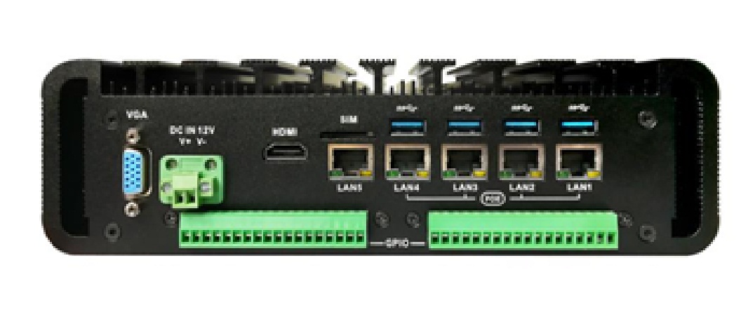 I0接口:2* RS232/485/422   4*RJ45( POE供電)   4*3.0USB 不銹鋼開機(jī)按鈕