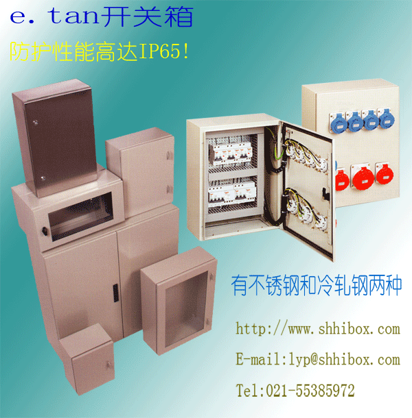 臺灣e.tan牌IP65壁掛式鐵制開關(guān)箱 國內(nèi)僅有的三家通過認(rèn)證的生產(chǎn)廠家之一. 有不銹鋼和冷軋鋼兩種.是中外合資企業(yè)生產(chǎn);經(jīng)過歐洲TUV認(rèn)證,防護(hù)等級IP65. 采用高標(biāo)準(zhǔn)不銹鋼和冷軋鋼板制造,箱體是由一塊連續(xù)的鋼板雙褶后焊接而成。其中冷軋鋼內(nèi)外表面均由RAL-7032灰色漆料(聚酯環(huán)氧樹脂)靜電噴塑處理。門可以左右互換;箱體厚度1.2MM,門厚度1.5MM. 廣泛地應(yīng)用于發(fā)電廠、變壓站、銀行、證券大樓、鐵路、機(jī)場等控制系統(tǒng)上。 e.tan牌鋼軌(標(biāo)準(zhǔn)35mm符合RoHS標(biāo)準(zhǔn))。 在上海我們有500多平方的倉庫,備有大量的現(xiàn)貨來服務(wù)客戶