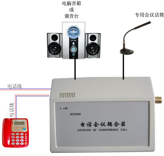 使用時(shí)將電話會(huì)議耦合器直接接到電話線上,并將有源音箱、功放、調(diào)音臺(tái)的等功率放大設(shè)備直接連接到音頻輸出接口上,將話筒接到音頻輸入接口上即可。當(dāng)召開(kāi)電話會(huì)議時(shí),對(duì)方電話的聲音就會(huì)通過(guò)電話會(huì)議通輸出到音響設(shè)備上擴(kuò)音輸出,通過(guò)電話會(huì)議耦合器上的話筒就可與對(duì)方通話。擴(kuò)音功率根據(jù)外接音響設(shè)備功率而定。一般可以滿足20-100㎡以上的會(huì)場(chǎng)開(kāi)會(huì)使用。當(dāng)然,雙方都使用我公司的電話會(huì)議耦合器,更可將語(yǔ)音效果發(fā)揮到淋漓盡致。話筒采用專用的會(huì)議話筒,音箱采用通用電腦有源音箱。