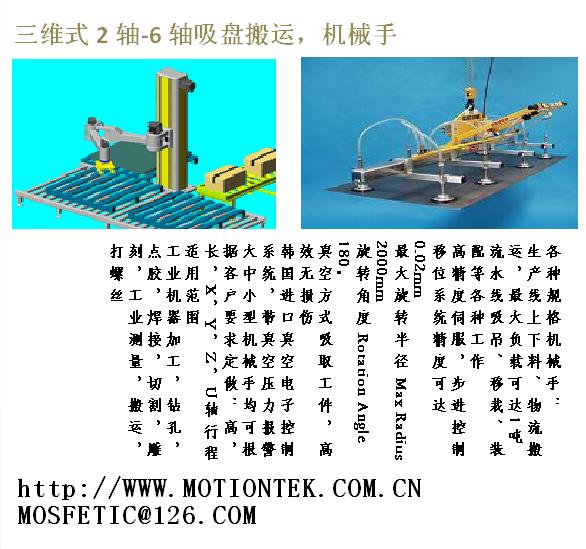龍門式機(jī)械手/工作平臺三維式機(jī)械手/工作平臺模組滑臺采用NSK滾珠絲杠和直線導(dǎo)軌副傳動,具有精度高,效率高,壽命長,磨損小,節(jié)能降耗,結(jié)構(gòu)緊湊,通用性較強(qiáng).仿震等效果,也可以根據(jù)用戶要求, 設(shè)計非標(biāo)工作臺如: 龍門式工作平臺五軸聯(lián)動有效行程X.450MM.X.450MM Y.450MMZ.150MM U.360度旋傳R.90度上下擺動使顯了人性化的機(jī)器人,材料跟據(jù)客戶選型如鋁合金,鋼板,大理石. 鋁型道模等;龍門式機(jī)械手/工作平臺數(shù)控工作臺系列產(chǎn)品可以配置步進(jìn)電機(jī)或伺服電機(jī). 龍門式機(jī)械手/工作平臺三維式機(jī)械手/工作平臺模組滑臺可廣泛應(yīng)用于激光焊接機(jī),激光切割機(jī),插線機(jī),打孔機(jī),涂膠機(jī),機(jī)械手,搬運或運輸生產(chǎn)線上,檢測裝置,射線探傷分析,應(yīng)力分析點膠機(jī)PCB移(絲)印機(jī)鉆銑機(jī)自動送鎖螺絲機(jī)全自動焊錫機(jī)噴涂機(jī)灌膠機(jī)等數(shù)控機(jī)床和實驗設(shè)備工控設(shè)備上.