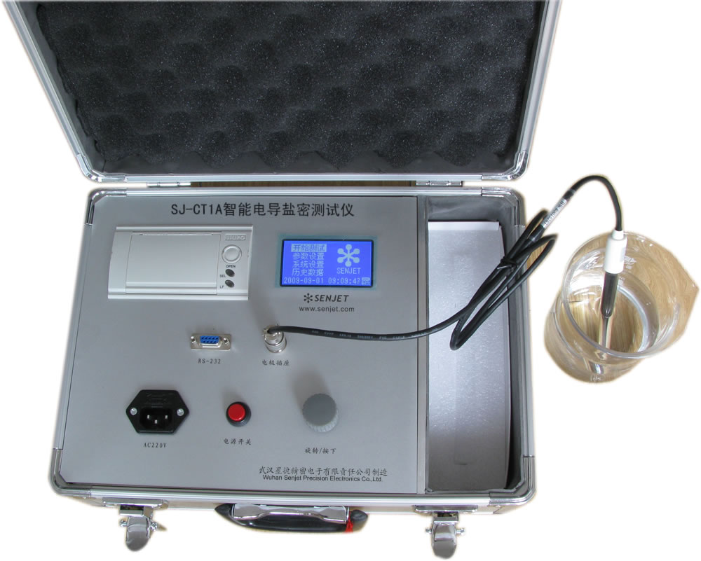 SJ-CT1A數字直讀式智能鹽密測試儀可用于絕緣子等值鹽密度以及溶液的電導率、溫度的測量。