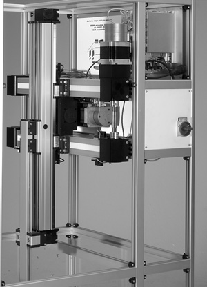 機器人定位系統(tǒng)是整臺設(shè)備的核心,為德國bahr公司產(chǎn)品, X,Y,Z三坐標均選擇為高精密滾珠絲杠傳動,單坐標重復(fù)定位精度為0.025mm。