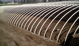 鑒于上述諸多因素,在一定程度上影響了塑料大棚的應用與推廣,現(xiàn)廣大農(nóng)村急需一種價格低廉,耐腐蝕、抗老化的新型大棚骨架來代替?zhèn)鹘y(tǒng)的竹、木、鋼材料,為此我公司科研人員經(jīng)過不懈努力,走訪多家科研機構(gòu),終于研制出一種價格低廉,適合我國國情的新型無機復合材料的大棚支架,它表面光滑如鏡、耐腐蝕、抗老化,使用壽命在15年以上。