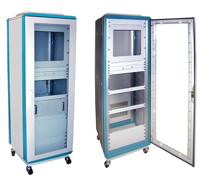 標(biāo)準(zhǔn)配置:1,一套帶門的箱體框架,2.一扇裝有玻璃的前門。3.一扇裝有通風(fēng)槽的后門。4.底輪四個(gè)。