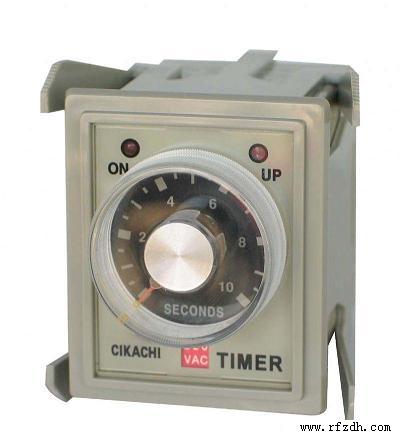 臺(tái)灣松菱CKC(CIKACHI)時(shí)間繼電器 產(chǎn)品介紹: 一、限時(shí)繼電器AH3-3: - 內(nèi)裝CMOS IC故具高信賴度及穩(wěn)定度 - 精確度高,往復(fù)誤差小於±1%以下 - 兩只電源指示燈,指示電源接通及時(shí)間到指示 - 種類多,從0.1sec至24hrs,具有15種以上時(shí)間範(fàn)圍 - 使用接合器(Type Y-40)即可將標(biāo)準(zhǔn)露出安裝型轉(zhuǎn)變?yōu)槁袢氚惭b型 尺寸 50H x 40W x 57.5D 58H x 48W x 65D 時(shí)間範(fàn)圍 SEC : 1, 3, 6, 10, 12, 30, 60 MIN : 3, 6, 10, 30, 60 H R : 3, 6, 10, 24
