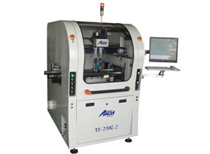 特點(diǎn):  采用電腦+運(yùn)動(dòng)控制器,WINDOWS XP操作系統(tǒng),故障聲光報(bào)警及菜單顯示  編程采用CAD導(dǎo)圖或手動(dòng)示教,操作簡單快捷  整體式鋼制運(yùn)動(dòng)平臺(tái),確保運(yùn)行平穩(wěn)  X、Y、Z三軸運(yùn)動(dòng)  采用伺服馬達(dá)+滾珠絲桿驅(qū)動(dòng)  運(yùn)行精度0.02mm,可自動(dòng)消除誤差  配備2個(gè)膠閥  膠閥自動(dòng)清洗裝置  專用鋁合金軌道及不銹鋼輸送鏈條,可同時(shí)生產(chǎn)兩種產(chǎn)品,無進(jìn)出板等待時(shí)間  獨(dú)立涂料容器桶  配備廢氣收集、排放裝置  配備SMEMA接口可與其它設(shè)備通訊 電路板涂覆機(jī),多功能涂覆機(jī),多功能涂覆點(diǎn)膠機(jī)(Selective Coating Machine) 特點(diǎn):  采用電腦+運(yùn)動(dòng)控制器,WINDOWS XP操作系統(tǒng),故障聲光報(bào)警及菜單顯示  編程采用CAD導(dǎo)圖或手動(dòng)示教,操作簡單快捷  整體式鋼制運(yùn)動(dòng)平臺(tái),確保運(yùn)行平穩(wěn)  X、Y、Z三軸運(yùn)動(dòng)  采用伺服馬達(dá)+滾珠絲桿驅(qū)動(dòng)  運(yùn)行精度0.02mm,可自動(dòng)消除誤差  配備2個(gè)膠閥  膠閥自動(dòng)清洗裝置  專用鋁合金軌道及不銹鋼輸送鏈條,可同時(shí)生產(chǎn)兩種產(chǎn)品,無進(jìn)出板等待時(shí)間  獨(dú)立涂料容器桶  配備廢氣收集、排放裝置  配備SMEMA接口可與其它設(shè)備通訊 電路板涂覆機(jī),多功能涂覆機(jī),多功能涂覆點(diǎn)膠機(jī)(Selective Coating Machine) 技術(shù)參數(shù)(Technical Parameter) 型號(hào) Model TF-250C-2 外型尺寸 External Size L*W*H 1220×1350×1650mm(L×W×H) 重量 Weight 600kg 控制 Control Mode PC+運(yùn)動(dòng)卡 運(yùn)行軟件 Software Tf4sad2.0+ Windows 編程方式 Programming 示教+CAD導(dǎo)圖 軸數(shù) Axis X、Y、Z 驅(qū)動(dòng) Drive 伺服馬達(dá)+滾珠絲桿 最大移動(dòng)速度 Max. move speed 800mm/秒 涂覆工作范圍 Coating scope L450×W250mm×2套 元件最大高度 Max. PCB height 70mm 定位精度 Positioning accuracy 0.02mm 重復(fù)精度 Repeat accuracy 0.02mm 軌道數(shù)量 Conveyor quantity 2 調(diào)幅方式 Width adjusting mode 自動(dòng) 調(diào)幅速度 Width adjust speed 250mm/min 輸送高度 Conveyor height 900±20mm 輸送速度 Conveyor speed 2-5m/min 傳送方向 Conveyor direction L→R (R→L選配) PCB邊緣空間 PCB edge space ≥3mm 傳輸馬達(dá)功率 Conveyor motor power DC24V 60W 通訊端口 Communication port SMEMA接頭 膠閥數(shù)量 Nozzle quantity 2個(gè) 膠閥類型 Nozzle type 針式膠閥、錐形噴膠閥、扇形噴膠閥(任選2個(gè)) 單次涂覆寬度 Single coating width 2~30mm 涂料容量 Material volume 20L 排風(fēng)量要求 Draft capacity 15m3/min 電源 Power supply AC220V 50~60HZ 總功率 Total power 2.6KW 氣壓 Pressure 0.4Mpa 負(fù)壓檢測 Pressure test 標(biāo)配 編程器 Programming panel 標(biāo)配 CAD導(dǎo)圖 CAD drawing load 標(biāo)配 離線編程 Off-line programming 選配 涂料監(jiān)測 Material Detection 選配 視覺定位 Camera location 選配 壓板裝置 Clamp device 選配 條碼掃描 Bar code 選配 UPS UPS 選配 • 安達(dá)公司主要生產(chǎn)“節(jié)能型無鉛波峰焊錫機(jī)”、“全自動(dòng)選擇性噴膠機(jī)”、“無鉛回流焊機(jī)”、“全自動(dòng)錫渣還原機(jī)”及SMT周邊設(shè)備。產(chǎn)品性能穩(wěn)定、節(jié)能環(huán)保、功能強(qiáng)大、自動(dòng)化程度高。其節(jié)能無鉛波峰焊錫機(jī)被業(yè)內(nèi)專家評定為“世界獨(dú)創(chuàng)、國際領(lǐng)先”;其選擇性涂覆機(jī)被業(yè)內(nèi)專家評定為“國內(nèi)首創(chuàng)、國際水平”。獲得了“SMT創(chuàng)新成果獎(jiǎng)”、“SMT China vision(遠(yuǎn)見獎(jiǎng))”、“SMT中華成就獎(jiǎng)”,更獲得了人民日報(bào)(海外版)的專訪,并整篇報(bào)道了安達(dá)公司的產(chǎn)品。 http://www.anda-dg.com/proof/