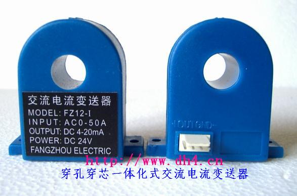 FZ系列9、12、20、25、30型穿孔穿芯一體化交流電流變送器是組合電流互感器、電流變送器于一體的新一代交流電流變送器,它可以直接將被測(cè)主回路交流電流轉(zhuǎn)換成按線性比例輸出的DC4~20mA(通過(guò)250Ω 電阻轉(zhuǎn)換DC1~5V或通過(guò)500Ω電阻 轉(zhuǎn)換DC2~10V)恒流環(huán)標(biāo)準(zhǔn)信號(hào),連續(xù)輸送到接收裝置(計(jì)算機(jī)或顯示儀表)。