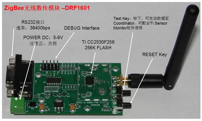 型號(hào):DRF1601,主要功能:串口轉(zhuǎn)Zigbee無(wú)線數(shù)據(jù)透明傳輸