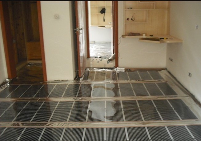 電熱膜表層材料為特制的聚酯薄膜,膜片中間的墨線是采用特制可導(dǎo)電油墨,是電熱膜核心部分,相當(dāng)于很多并聯(lián)的電阻,通電后可發(fā)熱。電熱膜兩邊的銀色條是金屬載流條,是用來連接油墨(電阻),作用相當(dāng)于導(dǎo)線。金屬載流條的主要材料為銅鍍錫和銀漿。電熱膜智能供暖系統(tǒng)采用先進(jìn)的電腦數(shù)控技術(shù)制造,能精確控制膜片上固化油墨的厚度,保證膜面溫度均勻穩(wěn)定。 低溫輻射電熱膜是一種通電后能發(fā)熱的半透明聚酯薄膜,由可導(dǎo)電的特制油墨、金屬載流條經(jīng)加工、熱壓在絕緣聚酯薄膜間制成。工作時以電熱膜為發(fā)熱體,將熱量以輻射的形式送入空間,使人體和物體首先得到溫暖,其綜合效果優(yōu)于傳統(tǒng)的對流供暖方式。低溫輻射電熱膜系統(tǒng)由電源、溫控器、連接件、絕緣層、電熱膜及飾面層構(gòu)成。電源經(jīng)導(dǎo)線連通電熱膜,將電能轉(zhuǎn)化為熱能。由于電熱膜為純電阻電路,故其轉(zhuǎn)換效率高,除一小部分損失(2%),絕大部分(98%)被轉(zhuǎn)化成熱能. 電熱膜系統(tǒng)組成及功能: (1)電熱膜系統(tǒng)包括以下幾個部分: 1、保溫層 2、反射膜 3、電熱膜;4、連接導(dǎo)線、連接卡、絕緣罩 5、溫控器。 (2)電熱膜片 電熱膜片是整個系統(tǒng)的核心元件,是此系統(tǒng)的發(fā)熱元件。它的基材為PET特制聚酯膜,發(fā)熱體為特制導(dǎo)電油墨、附以銀漿和導(dǎo)電的金屬匯流條為導(dǎo)電引線,最后經(jīng)熱壓下復(fù)合而成。電熱膜的發(fā)熱主要以輻射的方式散發(fā)熱量,屬低溫輻射,它具有透射性,以紅外線的形式向室內(nèi)散發(fā)傳遞熱能。 (3)連接導(dǎo)線、連接卡、絕緣罩 連接導(dǎo)線是對電熱膜提供電源,對整個電路構(gòu)成回路,連接卡、絕緣罩是為了跟電熱膜的組成部分 ,保證運(yùn)行安全。 (4)溫控器 對整個電熱膜系統(tǒng)進(jìn)行控制,保證室內(nèi)溫度的穩(wěn)定性。 電熱膜連接方法: 電熱膜通過連接卡與溫控器連接,每組膜以并聯(lián)方式連接,最后統(tǒng)一由一組線路串聯(lián)到溫控器,所有接頭均密封于連接卡中,導(dǎo)線部分不能出現(xiàn)接頭點. 附,連接卡安裝方法: ▼連接卡安裝在電熱膜組的一個末端(另一末端用特制絕緣膠帶作絕緣處理)。 ▼將連接卡的中心對準(zhǔn)并蓋住載流條的一端。用專用工具的壓力將其壓緊在適當(dāng)?shù)奈恢谩? ▼用專用壓接鉗將連接卡壓緊、壓平到電熱膜上,并用M3膠作防水絕緣處理。