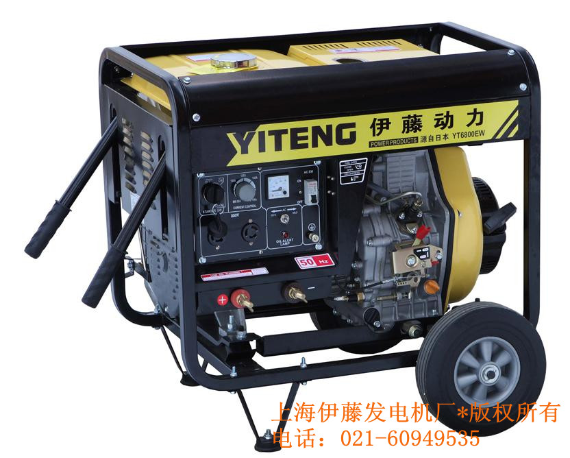 產(chǎn)品名稱:柴油發(fā)電電焊機(jī) 產(chǎn)品型號(hào):YT6800EW 額定功率:1.8KW 產(chǎn)品用途:本款機(jī)器是發(fā)電機(jī)和發(fā)電焊機(jī)的完美結(jié)合,可以焊接3.2-4.0的焊條,適用于戶外鋼鐵結(jié)構(gòu)的焊接,常態(tài)焊3.2焊條,可點(diǎn)焊4.0焊條,自帶2KW發(fā)電機(jī),可帶動(dòng)焊機(jī)的運(yùn)行,另外可以在不焊接的時(shí)候可以提供照明,是戶外施工的必備工具。 推薦理由:柴油發(fā)電電焊機(jī),這款發(fā)電電焊一體機(jī)以柴油為燃料,節(jié)能省油,手推車式帶有輪子,不管您是在工地使用,還是車載運(yùn)輸這個(gè)發(fā)電焊機(jī)都非常的方便 關(guān) 鍵 詞:柴油發(fā)電電焊機(jī),發(fā)電焊機(jī),發(fā)電電焊兩用機(jī),推車式發(fā)電焊機(jī),2KW輔助電源,發(fā)電電焊一體機(jī),施工專用發(fā)電焊機(jī),伊藤發(fā)電焊機(jī),柴油發(fā)電焊機(jī)-YT6800EW 產(chǎn)品介紹:電焊機(jī)使用電能源,將電能瞬間轉(zhuǎn)換為熱能,電很普遍,電焊機(jī)適合在干燥的環(huán)境下工作,不需要太多要求,因體積小巧,操作簡單,使用方便,速度較快,焊接后焊縫結(jié)實(shí)等優(yōu)點(diǎn)廣乏用于各個(gè)領(lǐng)域,特別對(duì)要求強(qiáng)度很高的制件特實(shí)用,可以瞬間將同種金屬材料(也可將異種金屬連接,只是焊接方法不同)永久性的連接,焊縫經(jīng)熱處理后,與母材同等強(qiáng)度,密封很好,這給儲(chǔ)存氣體和液體容器的制造解決了密封和強(qiáng)度的問題。 售后維修:質(zhì)保一年,終生維護(hù),全國聯(lián)保