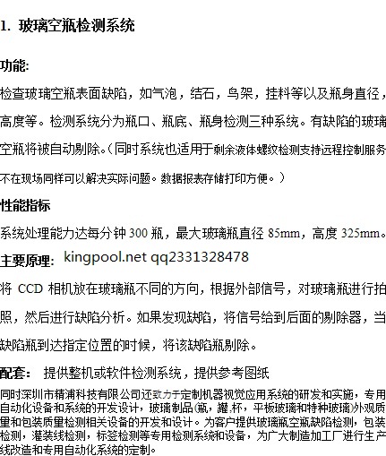 玻璃瓶缺陷檢測(cè)系統(tǒng) 深圳市精浦科技有限公司