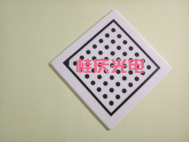 產(chǎn)品特性: 1. 攝像機標定是準確測量目標物體的必要過程,每個鏡頭的畸變程度各不相同,通過攝像機標定就可以校正這個鏡頭的畸 變。在攝像機標定后就可以得到世界坐標系中目標物體米制單位的坐標,攝像機標定其實就是確定攝像機內(nèi)參和外參的過程 2. 定位精度高達0.001mm; 3.halcon兼容標定板 外圍帶邊框和一個斜角,7x7圓點矩陣 產(chǎn)品規(guī)格:80*80mm 圓點直徑:5mm 產(chǎn)品材質(zhì):陶瓷漫反射材質(zhì)