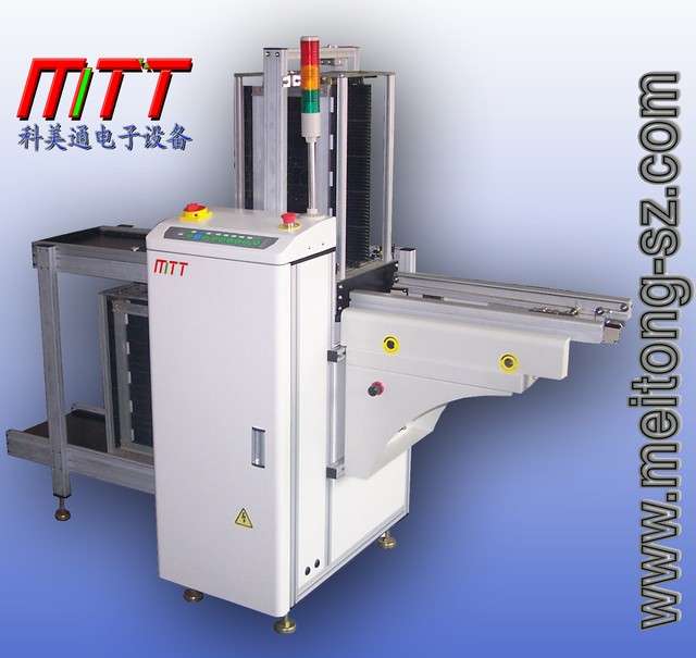 UNLOADER SMT自動收板機(jī)(下板機(jī)) 型號:MTT-XB-A3 深圳市美通電子設(shè)備有限公司http://www.meitong-sz.com,0755-27905052,13510163050,適用:SMT和AI自動生產(chǎn)線,生產(chǎn)完成后自動將PCB板收進(jìn)料架內(nèi),無須用手接觸PCB板,更好的保護(hù)了PCB板。并可設(shè)置升降格數(shù),本機(jī)具有升降精度高、自動進(jìn)出料架、故障(音、色)報(bào)警功能,是實(shí)現(xiàn)全線自動化及高產(chǎn)量的必備設(shè)備特點(diǎn): 1. 采用可編程控制器PLC控制系統(tǒng)。 2. LED輕觸式控制界面,操作方便。 3. 收板推進(jìn)采用SMC無桿型氣缸推PCB板進(jìn)料架,推力可調(diào)保防PCB板 不被推壞。 4. 氣控采用進(jìn)口中排電磁閥,使推板氣缸可以停在任意的位置。 5. 料架定位用4個氣缸分別固定料架的4點(diǎn),使送板的精度更為可靠。 6. 收板出口裝有PCB保護(hù)感應(yīng)器,更為有效的保護(hù)了PCB板。。 7. 收板步距可分為四種(10,20,30,40MM) 8. 可放置3個料架(或者客戶要求) 9. 方向可選取從左至右或右至左 10.標(biāo)準(zhǔn)配備信號,可與其它設(shè)備進(jìn)行在線連接. 本公司所有設(shè)備均可根據(jù)客戶要求定做!