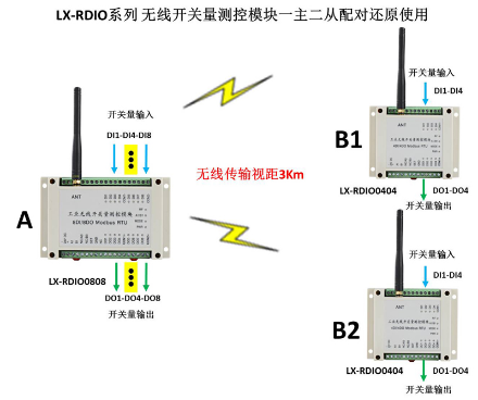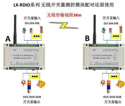 一、LX-RDIO系列無線開關(guān)量測控模塊概述: LX-RDIO系列無線開關(guān)量測控模塊是深圳前海聯(lián)訊技術(shù)有限公司自主研發(fā)的工業(yè)級控制器。支持點對點、點對多點的無線開關(guān)量信號采集與控制的方式,模塊具有收發(fā)一體、安裝方便、使用簡單、性價比高、穩(wěn)定可靠等特點,是原有設(shè)備或系統(tǒng)的滑速線,拖曳電纜、滑環(huán)等有線信號傳遞的升級最佳選擇產(chǎn)品。 LX-RDIO系列無線開關(guān)量測控模塊目前配置有:2DI/2DO、4DI/4DO、8DI/8DO等三種配置產(chǎn)品;無線發(fā)射功率標準配制有100mW(視距600米)、1000mW(視距3000米)等兩種規(guī)格,如需更遠距離,可另選無線配置。 二、LX-RDIO無線開關(guān)量測控模塊主要應(yīng)用領(lǐng)域: LX-RDIO系列無線開關(guān)量測控模塊可廣泛用于工業(yè)自動化控制中的工廠集中測控、泵站無線測控、立體倉庫、采油輸油測控、礦山機械、環(huán)保監(jiān)測設(shè)備、舞臺機械、起重機械、工業(yè)機器人、灌裝設(shè)備、攪拌設(shè)備、物流生產(chǎn)線、AGV智能小車等各行各業(yè)。 LX-RDIO系列無線開關(guān)量測控模塊產(chǎn)品性能: 工 作 頻 率 | 433MHz、450 MHz 、470MHz、868MHz、915MHz | 無 線 功 率 | 100mW(600m)、1000mW(3000m) | 開關(guān)量點數(shù) | 2DI/2DO、4DI/4DO、8DI/8DO | 開關(guān)量輸入類型 | 24V DC輸入 | 開關(guān)量輸出類型 | 進口繼電器,AC250V/5A,DC30V/5A | 供 電 電 壓 | 9-36V DC 常用24V DC | 配 置 接 口 | RS-485,帶無線RS-485(選購) | 信 道 個 數(shù) | 標配8信道,用戶可撥碼更改,超強衍射穿透能力 | 天 線 | 標配1.5m小吸盤天線,可購買大吸盤天線 | 工 作 溫 度 | -35℃~+75℃(工業(yè)級) | 工 作 濕 度 | 10%~90%相對濕度,無冷凝 | 外 形 尺 寸 | 2DI/2DO | 115×90×40(mm) | 4DI/4DO | 8DI/8DO | 145×88×40(mm) | 安 裝 方 式 | 3.5寸標準工業(yè)導軌安裝,工業(yè)塑料外殼 |