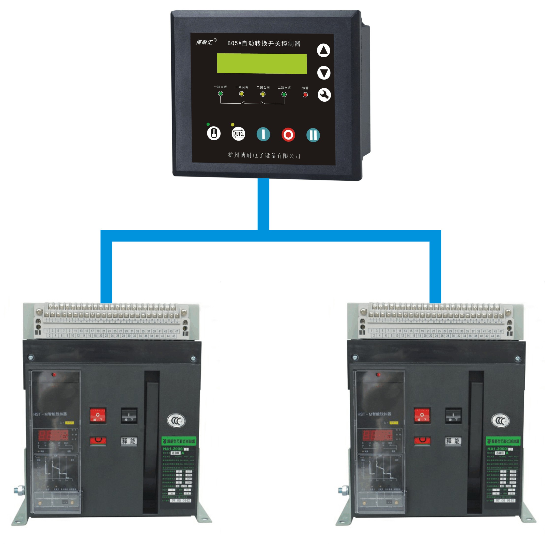 BQ5A自動轉(zhuǎn)換開關控制器是一種自動化測量、LCD顯示為一體的智能雙電源切換系統(tǒng)。是雙電源切換的理想產(chǎn)品,在與低壓空氣斷路器配套使用后,特別適合于兩路低壓進線側的自動轉(zhuǎn)換和保護。 BQ5A自動轉(zhuǎn)換開關控制器的執(zhí)行部件是框架式空氣斷路器,兩臺斷路器不用加裝適配器,也可以不需要欠壓脫扣器,控制器不需要外接直流電源,直接對兩路供電狀態(tài)進行檢測,自動控制完成常用電源與備用電源的轉(zhuǎn)換。 產(chǎn)品具有結構緊湊、電路先進、接線簡單,可靠性高,可廣泛應用于電力、石油、化工、煤炭、冶金、鐵道、市政、智能大廈等行業(yè)、部門的電氣裝置、自動控制以及調(diào)試系統(tǒng)。 產(chǎn)品特點 1.用于兩路市電、或一路市電一路發(fā)電自動切換,尤其適合兩路低壓空氣斷路器的切換; 2.時刻監(jiān)視兩路三相電壓,對出現(xiàn)的電壓異常(如失壓、過壓、 欠 壓、缺相)做出準確的判斷并輸出控制開關量; 3.設有自動/手動狀態(tài)切換功能,在手動方式下,可按手動鍵實現(xiàn)開關分合閘;自動狀態(tài)下,任一路出現(xiàn)電壓異常時,開關自動切換到另一路; 4.運行模式可設定為一路優(yōu)先、二路優(yōu)先或無優(yōu)先(互為備用); 5.數(shù)字顯示兩路相電壓及線電壓,LED顯示兩路合閘及工作狀態(tài); 6.可在控制器上更改各參數(shù),均采用數(shù)字化調(diào)整(連續(xù)可調(diào));同時記憶在內(nèi)部FLASH 存儲器內(nèi),在系統(tǒng)掉電時也不會丟失; 7.具有自動啟動油機功能;控制器不需要外接直流供電電源,簡單方便; 8.具有極強的抗電磁干擾能力,適合在強電磁干擾的復雜環(huán)境中使用; 9.控制器可與任何低壓空氣斷路器配套,如DW45、DW17、DW15、ABB Emax、MT、3WL等。 10.模塊化結構設計,阻燃ABS塑料外殼,嵌入式安裝方式,插拔式接線端子,結構緊湊,安裝維護十分方便。 使用方法