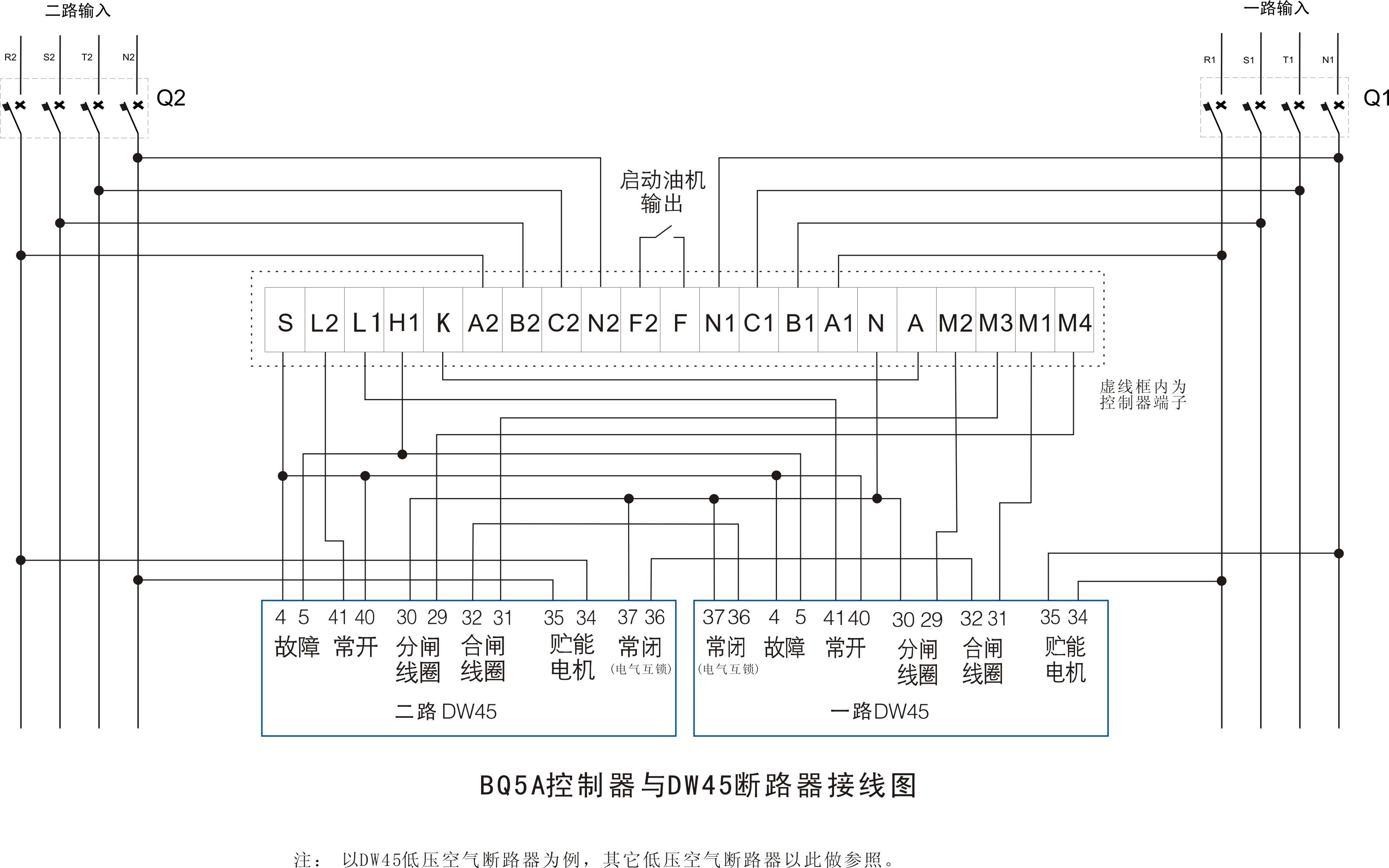 工作條件 1:由于各種低壓空氣式斷路器型號眾多,我們選取其中幾個有代表性的:國產(chǎn)DW45;ABB EMAX ;施耐德MT20;其它型號以此做參照。 2:為了雙電源的正常工作,低壓空氣式斷路器接入時必須安裝一些附件: 如合閘電磁鐵,分勵脫扣器。 3:雖然沒有機械聯(lián)鎖有電氣聯(lián)鎖也可工作,但是為了產(chǎn)品的安全可靠運行,建議加裝機械聯(lián)鎖,使產(chǎn)品實現(xiàn)雙重保護尤為必要。 4:產(chǎn)品出廠前已經(jīng)過嚴格測試,錯誤的接線及測試試驗將會對控制器造成損壞。