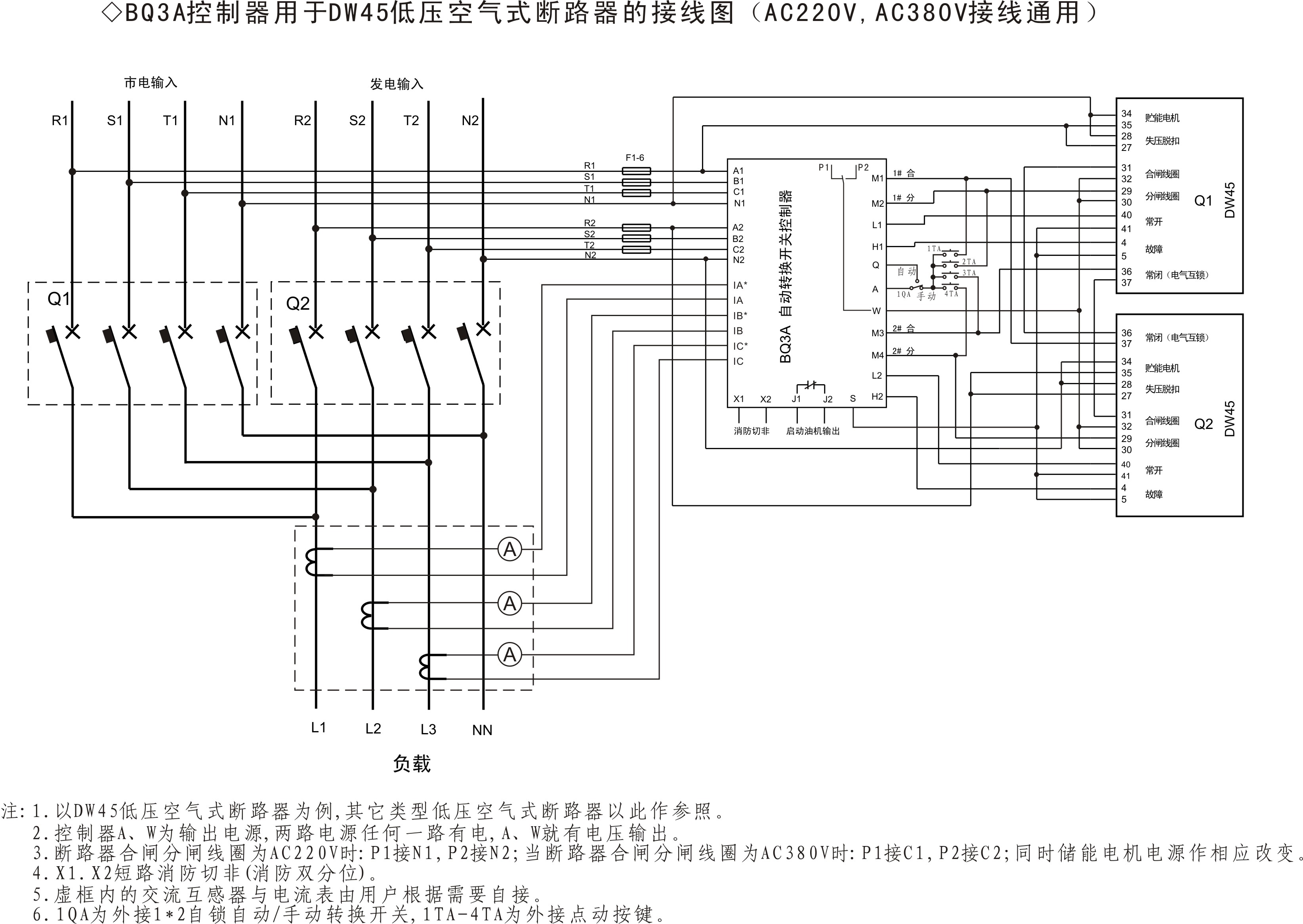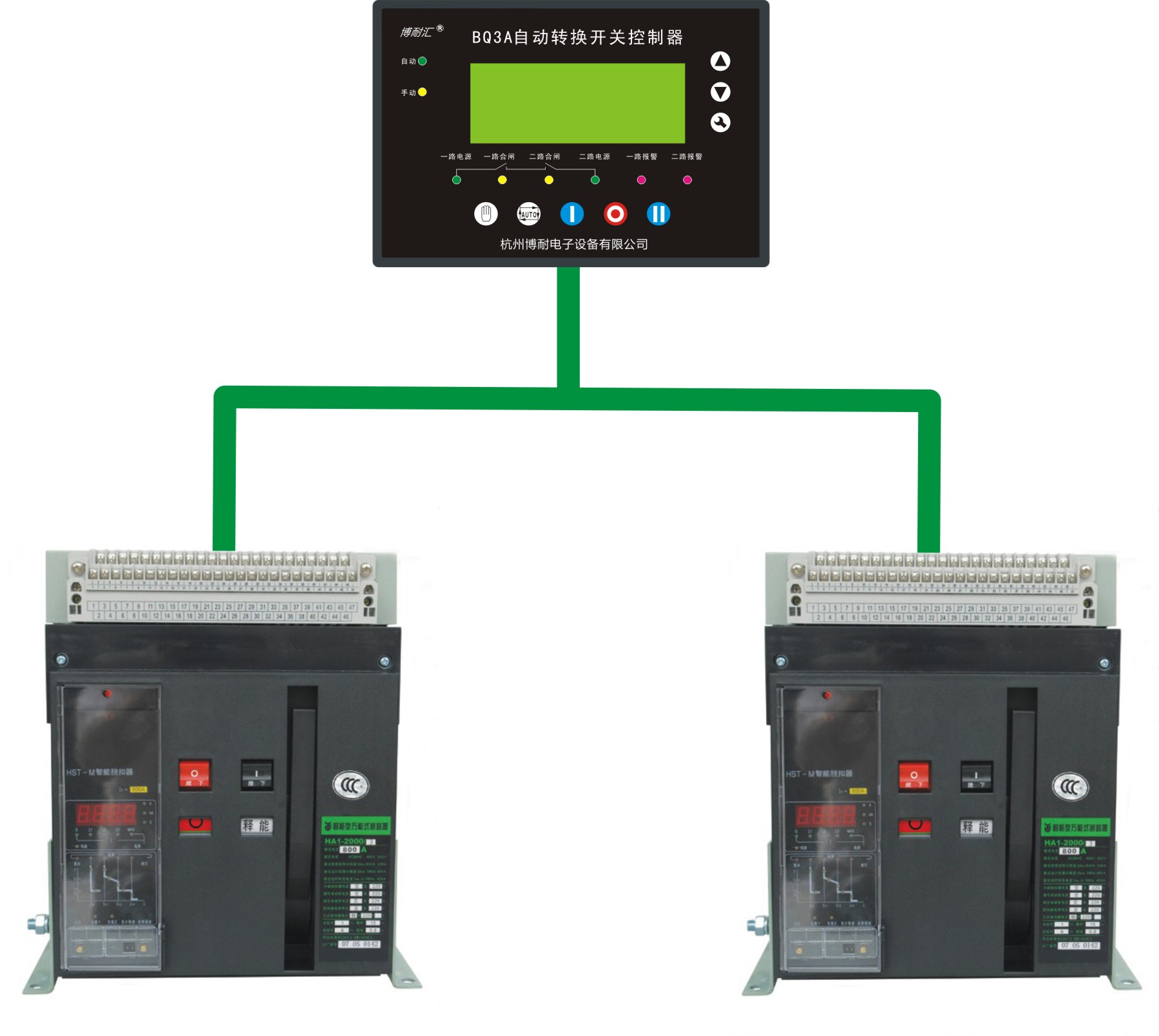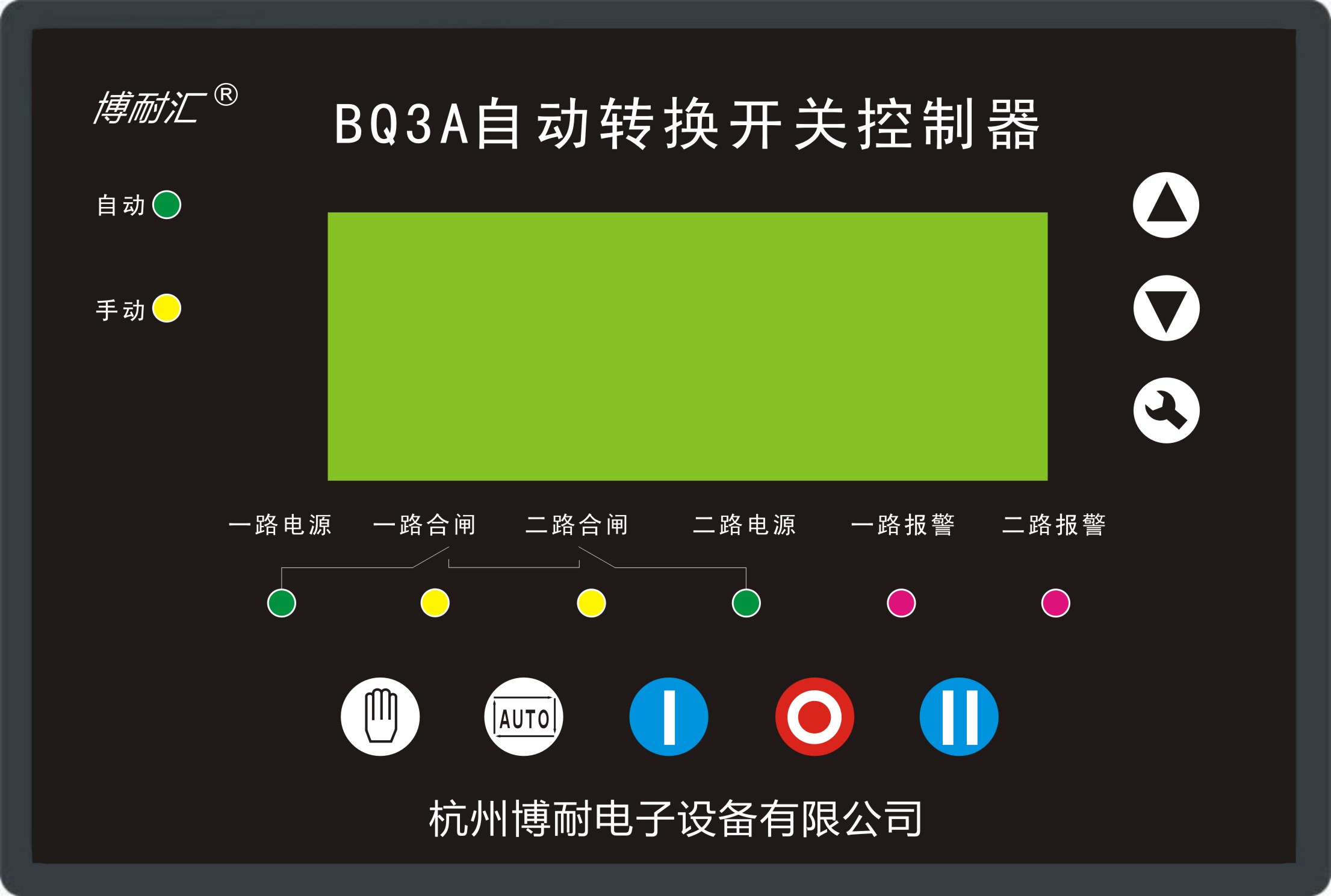 BQ3A自動(dòng)轉(zhuǎn)換開關(guān)控制器是一種自動(dòng)化測(cè)量、大屏幕LCD漢字顯示為一體的智能兩路電源切換系統(tǒng)。是雙電源自動(dòng)切換的理想產(chǎn)品,在與低壓空氣斷路器配套使用后,特別適合于兩路低壓進(jìn)線側(cè)的自動(dòng)轉(zhuǎn)換和保護(hù)。 產(chǎn)品具有結(jié)構(gòu)緊湊、電路先進(jìn)、接線簡(jiǎn)單,可靠性高,操作機(jī)構(gòu)不管是塑殼斷路器,還是框架斷路器,還是CD2的電操,都可與之配套?蓮V泛應(yīng)用于電力、石油、化工、煤炭、冶金、鐵道、市政、智能大廈等行業(yè)、部門的電氣裝置、自動(dòng)控制以及調(diào)試系統(tǒng)。 BQ3A自動(dòng)轉(zhuǎn)換開關(guān)控制器的執(zhí)行部件可以是框架式空氣斷路器也可以是塑殼斷路器,兩臺(tái)斷路器不用加裝適配器,也可以不需要欠壓脫扣器,控制器不需要外接直流電源,直接對(duì)兩路供電狀態(tài)進(jìn)行檢測(cè),自動(dòng)控制完成兩路電源的自動(dòng)轉(zhuǎn)換。