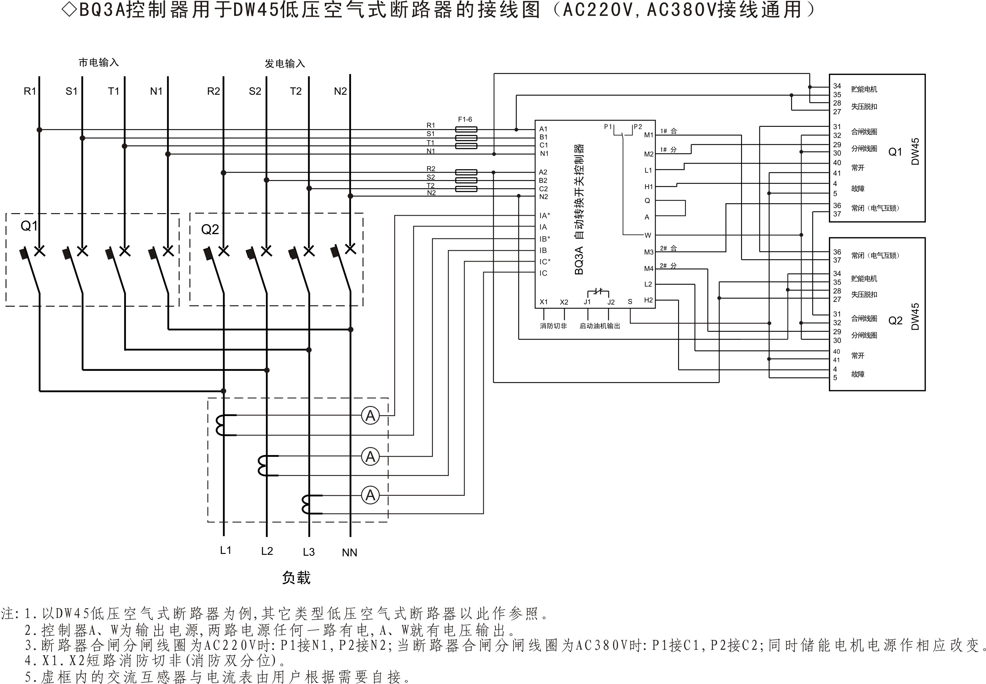尺寸  工作條件 1:由于各種低壓空氣式斷路器型號(hào)眾多,我們選取其中幾個(gè)有代表性的:國(guó)產(chǎn)DW45;ABB EMAX ;施耐德MT;其它型號(hào)以此做參照。 2:為了自動(dòng)轉(zhuǎn)換開關(guān)裝置的正常工作,低壓空氣式斷路器接入時(shí)必須安裝一些附件: 如合閘電磁鐵,分勵(lì)脫扣器。 3:產(chǎn)品出廠前已經(jīng)過嚴(yán)格測(cè)試,錯(cuò)誤的接線及測(cè)試試驗(yàn)將會(huì)對(duì)控制器造成損壞。