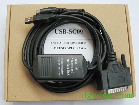 USB-SC09 USB接口的三菱 PLC 編程電纜,USB/RS422 接口,用于三菱 FX系列和A系列,帶通信指示燈,通信距離達(dá)2公里, 長(zhǎng)度3米.