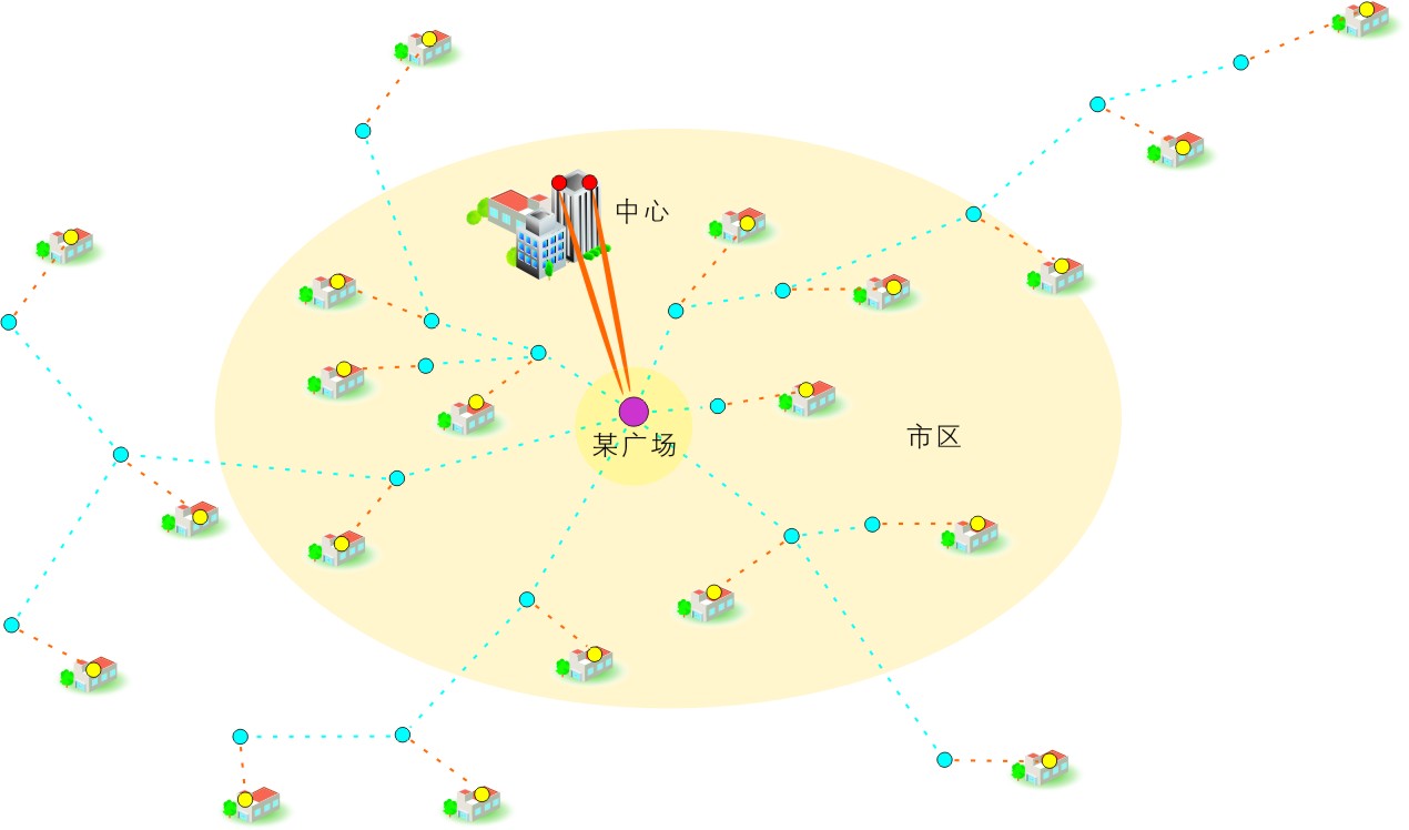 由于該項目實際環(huán)境復雜,市區(qū)內高樓林立,多數分支機構距離總部較遠,相互間基本不可視,通過專業(yè)的測試和設計,最終方案確定在各分支與總部間架設一個或多個中繼點,實現市區(qū)11個,郊區(qū)9個分支與總部的無線寬帶連接。
