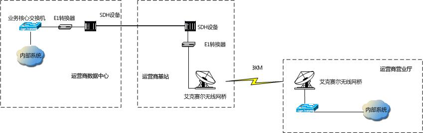 艾克賽爾(iAxel)這一無線寬帶傳輸系統(tǒng),針對“最后一公里”接入而設(shè)計,使用寬帶無線網(wǎng)橋設(shè)備。具體而言,運營商的內(nèi)部網(wǎng)絡(luò)系統(tǒng)通常都是接入到運營商數(shù)據(jù)中心專門的業(yè)務(wù)交換機,中間通過E1、運營商SDH系統(tǒng)在運營商分布在城市與鄉(xiāng)村的基站落地,再利用艾克賽爾(iAxel)無線網(wǎng)橋?qū)崿F(xiàn)營業(yè)廳內(nèi)部網(wǎng)絡(luò)系統(tǒng)的接入。