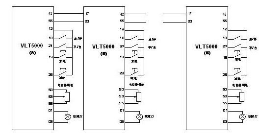 在工業(yè)輸送設(shè)備中,需要按照一定的速比實(shí)現(xiàn)多臺電機(jī)聯(lián)動。以往要實(shí)現(xiàn)此功能大都是通過機(jī)械裝置來完成,電氣方面的解決方案往往依靠大量的PLC模擬量模塊來實(shí)現(xiàn),使得系統(tǒng)存在靈活性低、維護(hù)工作量大、工藝復(fù)雜、成本較高、安裝困難等缺點(diǎn)。通過采用丹佛斯VLT5000系列變頻器,我們有了新的解決方案。