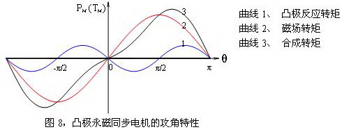由于凸極反應(yīng)轉(zhuǎn)矩的影響,隱極永磁同步電機(jī)的功角特性變差。