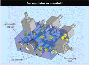 在需要微型蓄能器的應用中,蓄能器集成塊更具有創(chuàng)新性。(圖3)向我們展示了包含一個完整的蓄能器的液壓集成塊的3D模型。一個主孔用來放置蓄能器活塞。當然,這樣的集成塊還包括各式各樣的控制閥。