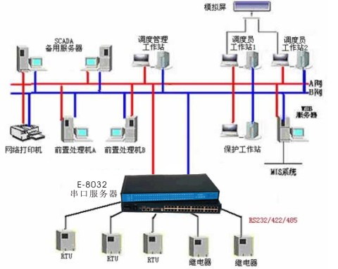 電力調度監(jiān)控系統(tǒng)和變電站集中控制中心(集控站)中大量采用了E-Base串口通訊服務器E-8000系列產品,作為RTU(遠方數(shù)據(jù)采集單元)或其它數(shù)據(jù)采集設備通過串行通信接入TCP/IP局域網(wǎng)的解決方案。