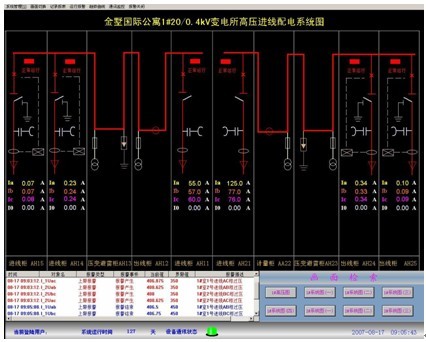 標準的變配電系統(tǒng)具有CAD一次單線圖顯示中、低壓配電網(wǎng)絡(luò)的接線情況;龐大的系統(tǒng)具有多畫面切換及畫面導(dǎo)航的功能;分散的配電系統(tǒng)具有空間地理平面的系統(tǒng)主畫面。主畫面可直觀顯示各回路的運行狀態(tài),并具有回路帶電、非帶電及故障著色的功能。主要電參量直接顯示于人機交互界面并實時刷新。