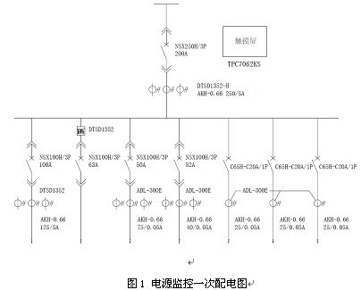 電源進線監(jiān)控由顯示觸摸屏與DTSD1352-H組成。