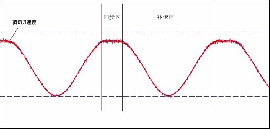 剪斷長大于兩倍刀刃周長情況下,在剪切周期中刀刃在剪斷動(dòng)作完成后減速并停止在設(shè)定點(diǎn),然后加速進(jìn)入同步區(qū)。