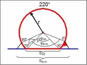 材料在同步時(shí)運(yùn)動(dòng)的長度: Ssync=2rsin()=77.135mm (1.1)