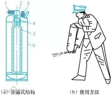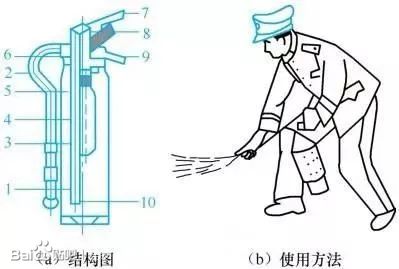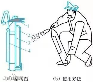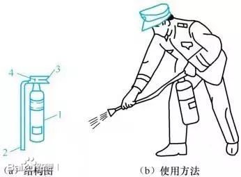 (3)干粉滅火器的使用。干粉滅火器主要適用于撲救石油及其產(chǎn)品、可燃?xì)怏w和電氣設(shè)備的初期火災(zāi)。其使用方法為。
