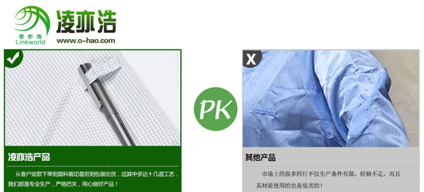 而低價(jià)假冒偽劣的防靜電工作服由于節(jié)約成本,采用面料里的導(dǎo)電絲質(zhì)量不達(dá)標(biāo)或者比例不對(duì),這樣就很難起到防靜電的作用;假冒偽劣的防靜電服裝為了混過(guò)測(cè)試一關(guān)采用漂染的方法,用防靜電液將衣服漂染成“防靜電服”,但是經(jīng)過(guò)清洗后,這種“防靜電服”就會(huì)失去防靜電效果;假冒偽劣的防靜電服裝采用的導(dǎo)電綢根本不是優(yōu)質(zhì)滌綸長(zhǎng)絲,甚至有些都是二次回收的,衣服在穿著過(guò)程中會(huì)掉細(xì)小毛屑,更加污染產(chǎn)品;假冒偽劣的防靜電服采用非專(zhuān)業(yè)包縫工藝,導(dǎo)致衣服的各個(gè)點(diǎn)不導(dǎo)通,做工很差,容易開(kāi)線脫絲,會(huì)對(duì)產(chǎn)品造成致命性的損壞,嚴(yán)重影響到企業(yè)的名譽(yù)及利益!