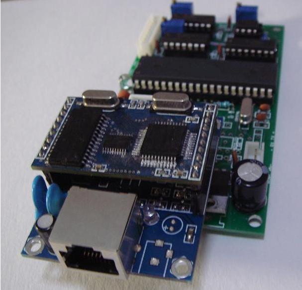 該局域網(wǎng)絡(luò)(以太網(wǎng))控制AD模數(shù)轉(zhuǎn)換/模擬量數(shù)據(jù)采集模塊采用TCP/IP協(xié)議與控制主機(PC機)進(jìn)行通訊,運行穩(wěn)定可靠。傳輸距離遠(yuǎn)(通過交換機級連可以達(dá)300米,甚至可以通過互聯(lián)網(wǎng)超遠(yuǎn)程控制),每塊AD轉(zhuǎn)換/數(shù)據(jù)采集板分配一個唯一的IP地址,通過IP地址進(jìn)行數(shù)據(jù)的傳輸區(qū)分;可以控制的AD轉(zhuǎn)換/數(shù)據(jù)采集板的數(shù)量大(IP地址范圍:192.168.1. 1~192.168.1.254,共可以驅(qū)動最多254個AD轉(zhuǎn)換/數(shù)據(jù)采集板)。本控制板具有6路10位(精度±1LSB)高速A/D轉(zhuǎn)換通道,可同時對外部輸入的6路模擬量(直流0-5V)進(jìn)行模數(shù)轉(zhuǎn)換,轉(zhuǎn)換后的結(jié)果(每通道轉(zhuǎn)換后的結(jié)果為2字節(jié)數(shù)據(jù))通過局域網(wǎng)(以太網(wǎng))向服務(wù)器主機(PC機)快速輸出?捎糜诂F(xiàn)場溫度,濕度,液位等模擬量的采集,與本公司其他網(wǎng)絡(luò)控制板配合可用于工業(yè)現(xiàn)場控制等(可代開發(fā)設(shè)計整套工控系統(tǒng))。本板每秒鐘可對所有6路外部模擬量進(jìn)行大約10次連續(xù)轉(zhuǎn)換輸出(也可定做其他輸出速度或輸出方式)。輸出的數(shù)據(jù)幀固定由14個字節(jié)組成,幀格式具體格式如下: